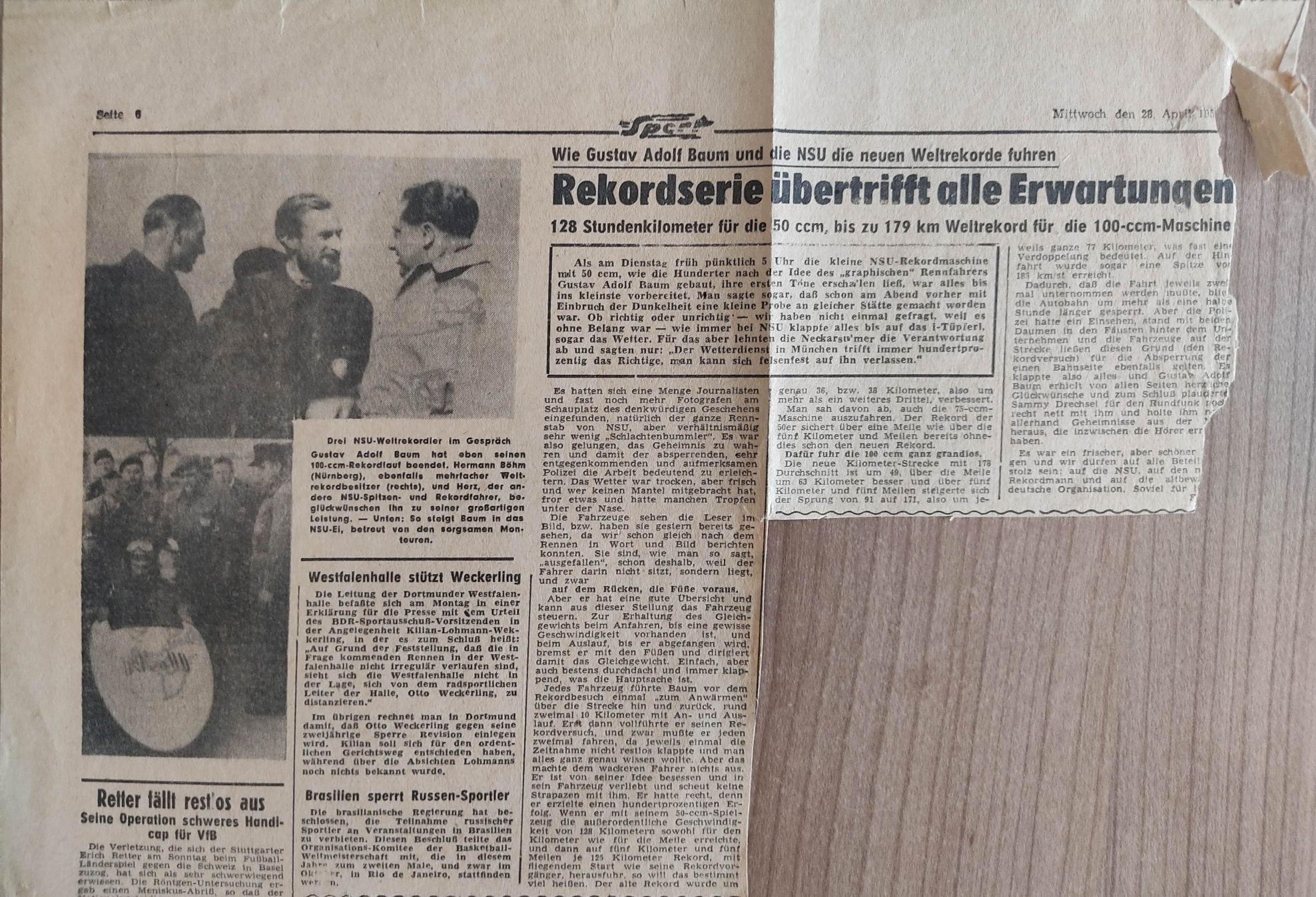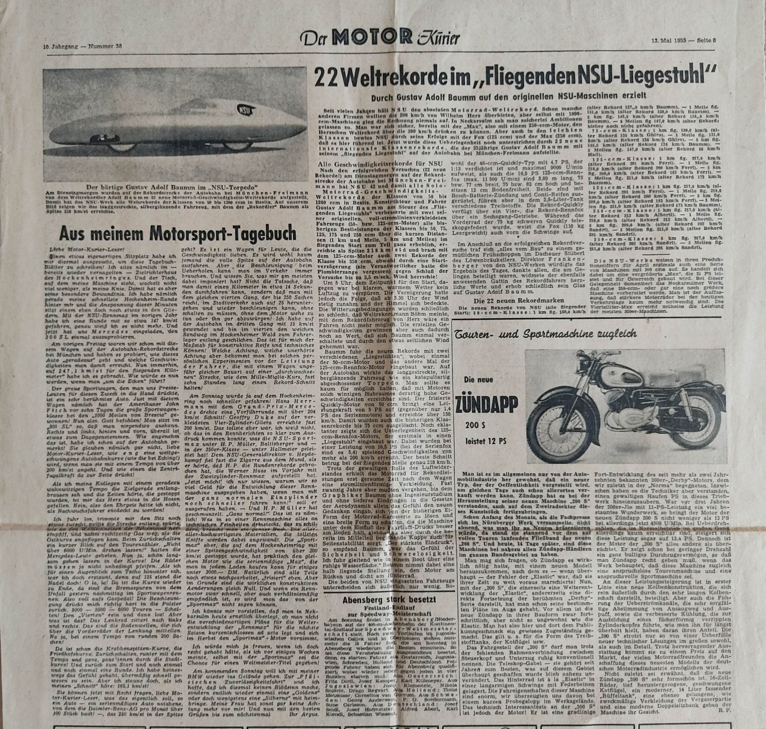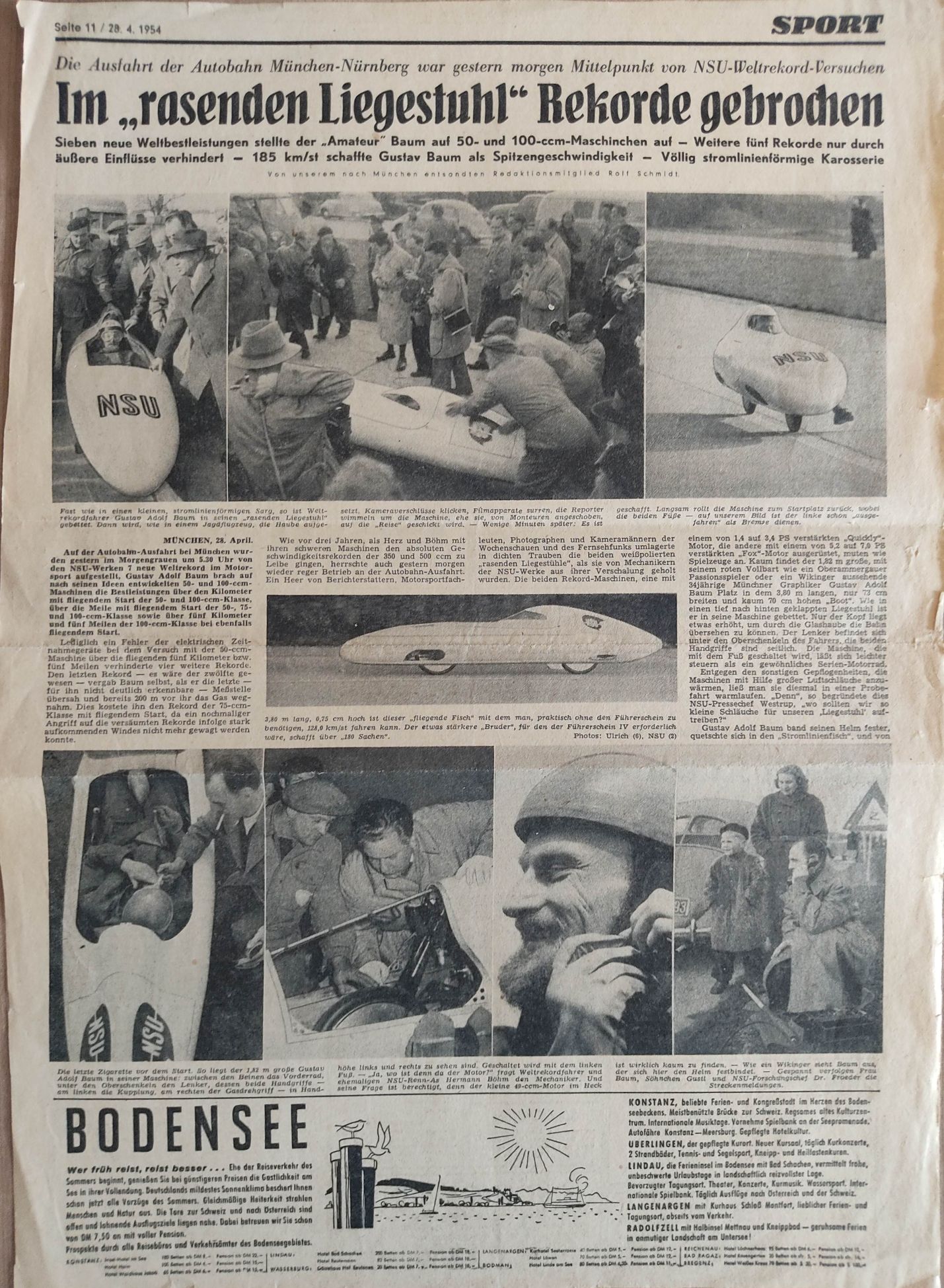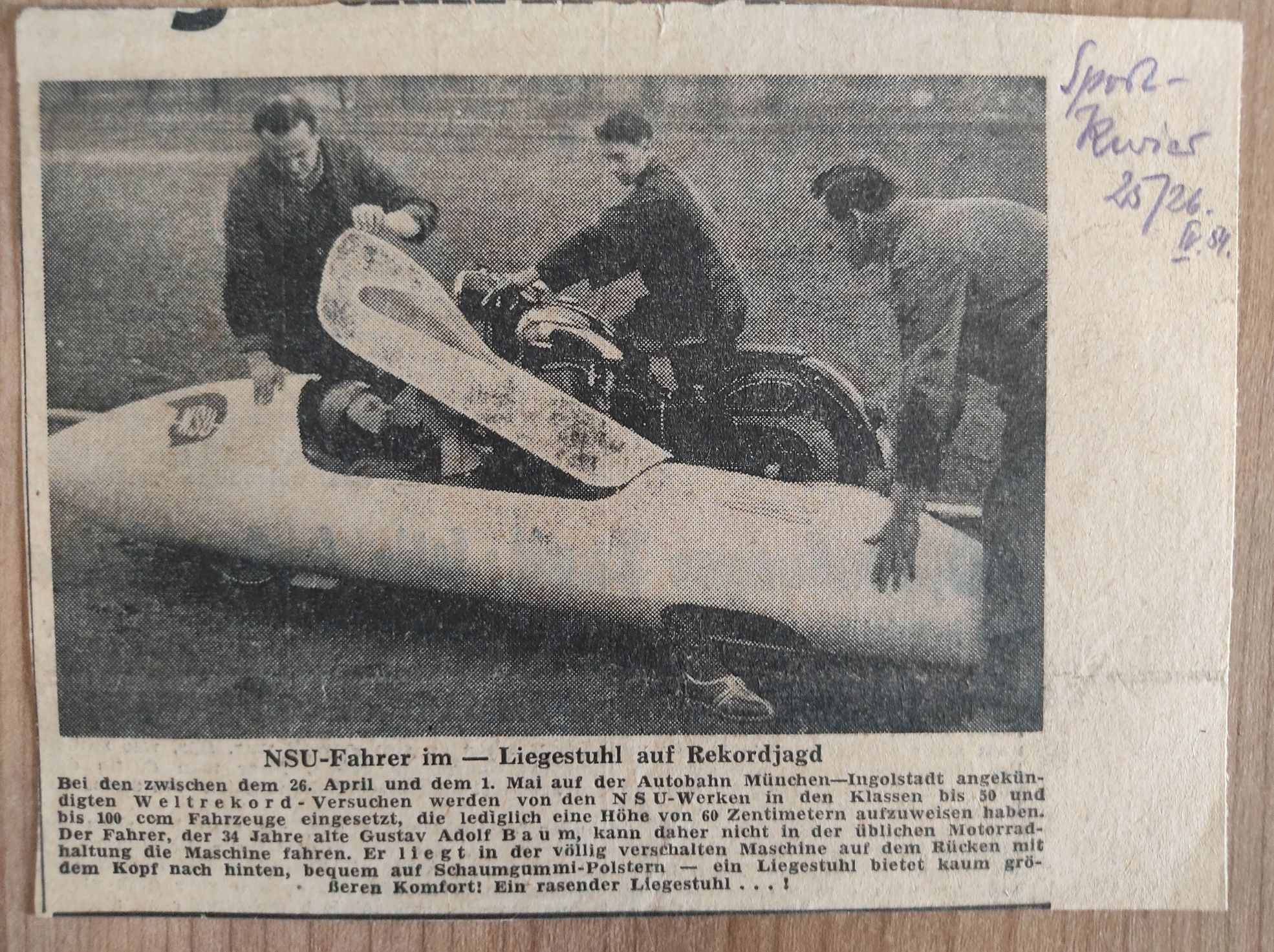NSU Fahrer im Liegestuhl auf RekordjagdHerunterladen